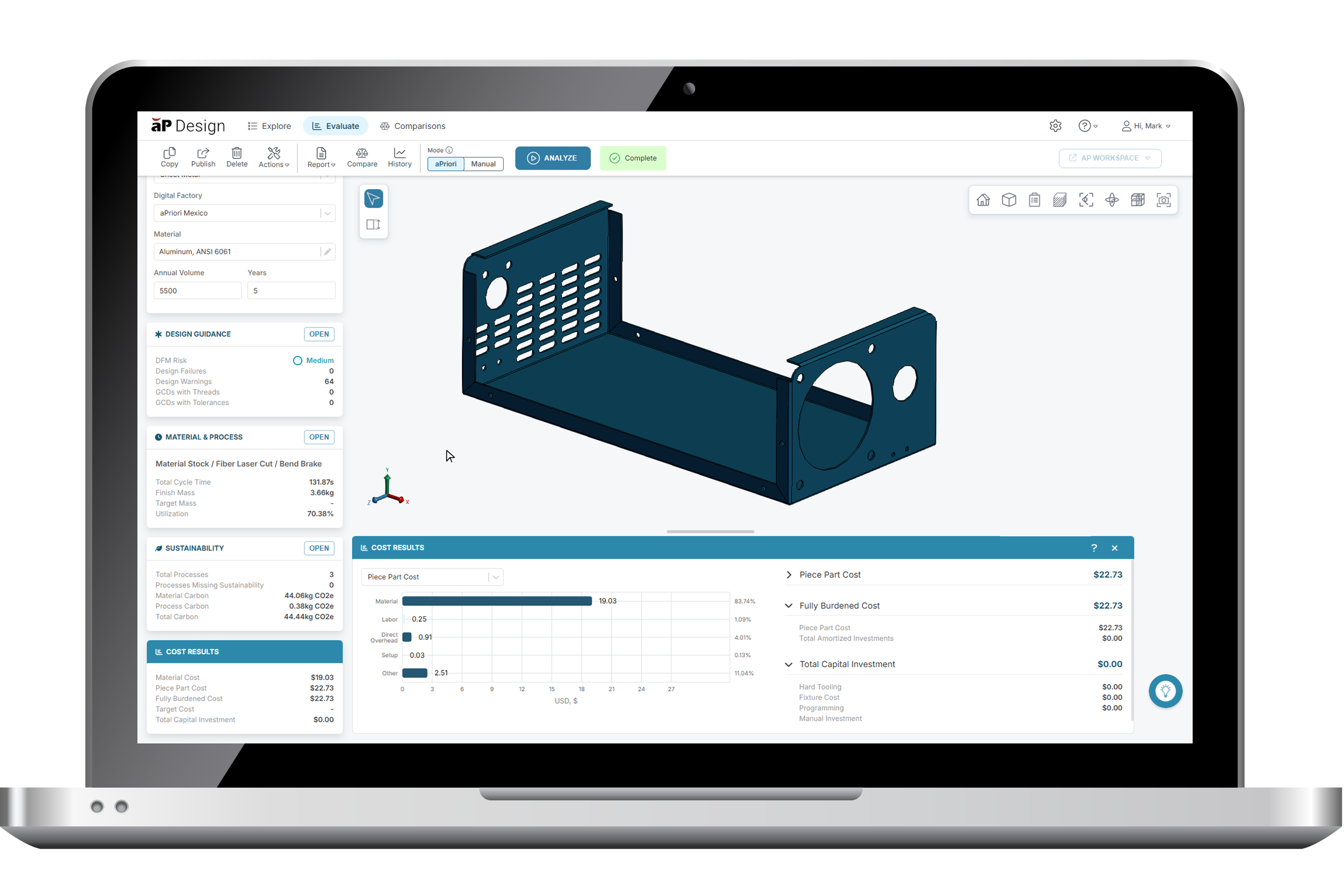 The aPriori Manufacturing Insights Platform empowers your product design and sourcing teams to identify and eliminate cost drivers early and often throughout the product development process so that your company can combat inflation and maintain profit margins without reducing headcount.