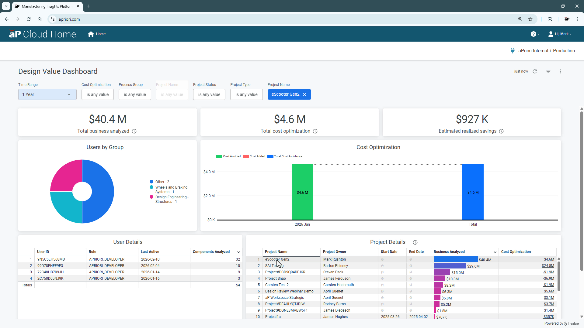 - aPriori’s Design Value Dashboard closes the gap, delivering integrated value tracking into the design workflow and automating it to quantify cost avoidance and cost reduction and track design performance across all teams in real time