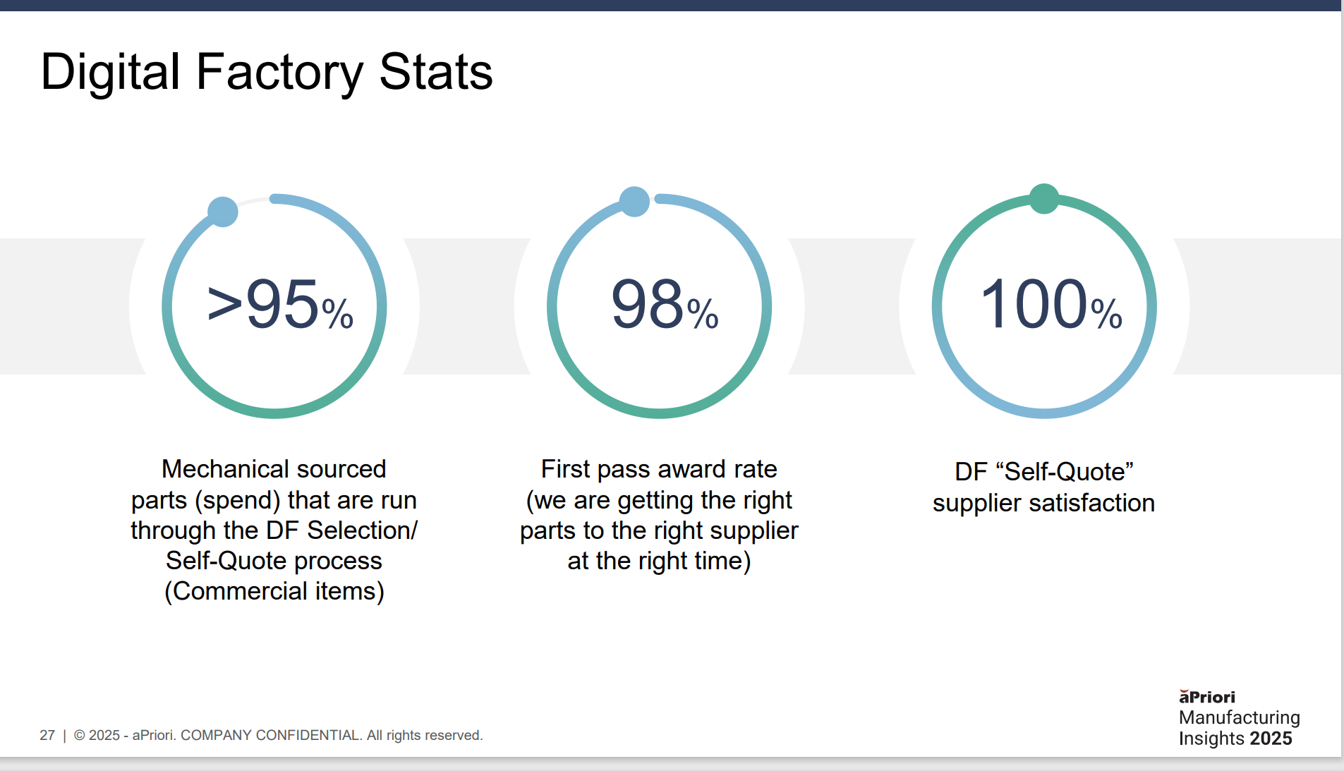 Using aPriori’s digital factories, sourcing teams can model how a part would actually be manufactured, incorporating machines, cycle times, processes, labor, overhead, and regional economics.