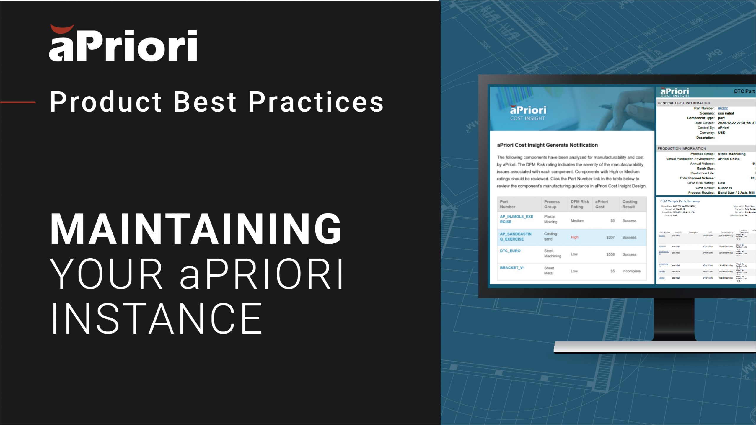 If your business decisions rely on aPriori, ensure that your instance is well-maintained to ensure that you always leverage the newest solutions and enhancements. This video highlights the key aspects of an aPriori solution that need to be part of your technology maintenance strategy as well as best practices to stay ahead of the game. You’ll learn about: